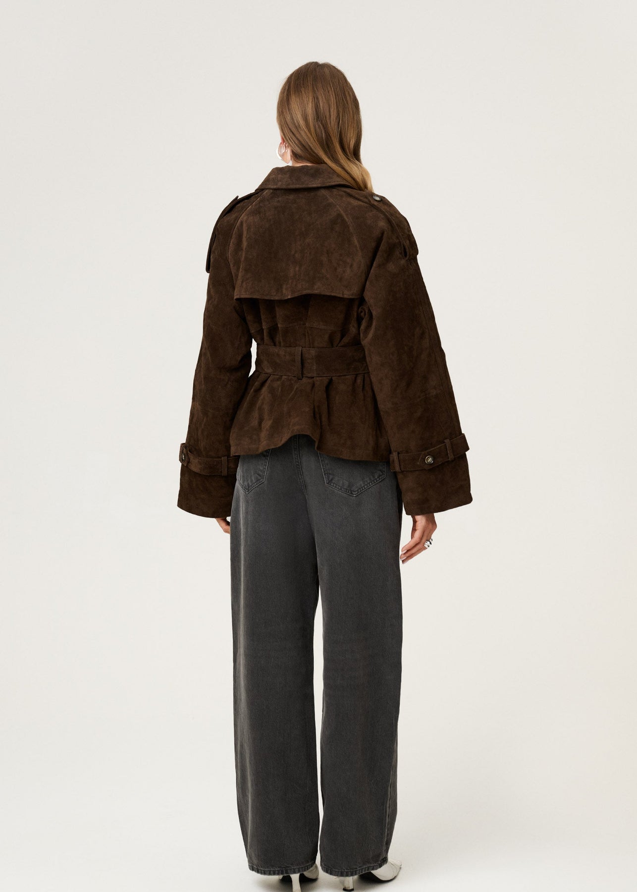 Meet the Sienna Cropped Trench: a refined trench jacket that effortlessly combines classic design with modern comfort. Crafted from soft suede leather, it features a cropped cut, belted waist, and oversized silhouette for a flattering yet relaxed fit. Fully lined in quilted fabric with light padding, it provides warmth and structure while maintaining a sleek, polished look.